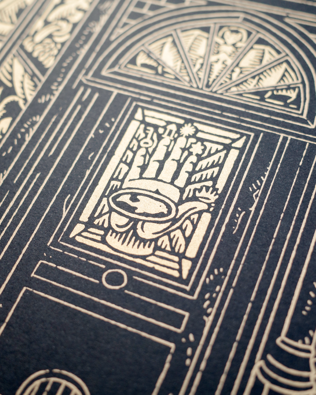 Passage à l'encre dorée métallisée sur un papier teinté dans la masse Fedrigoni Sirio Black 285 gr