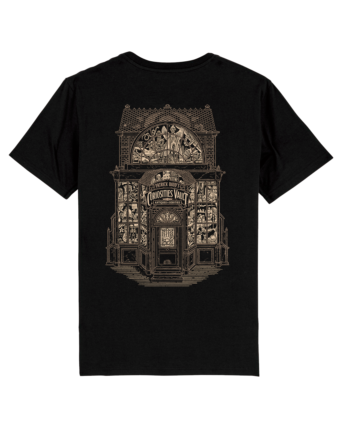 Le visuel, réalisé par le studio Vaderetro, est ici sérigraphié sur le coeur et dans le dos d'un tee-shirt noir unisexe en coton 100% biologique !