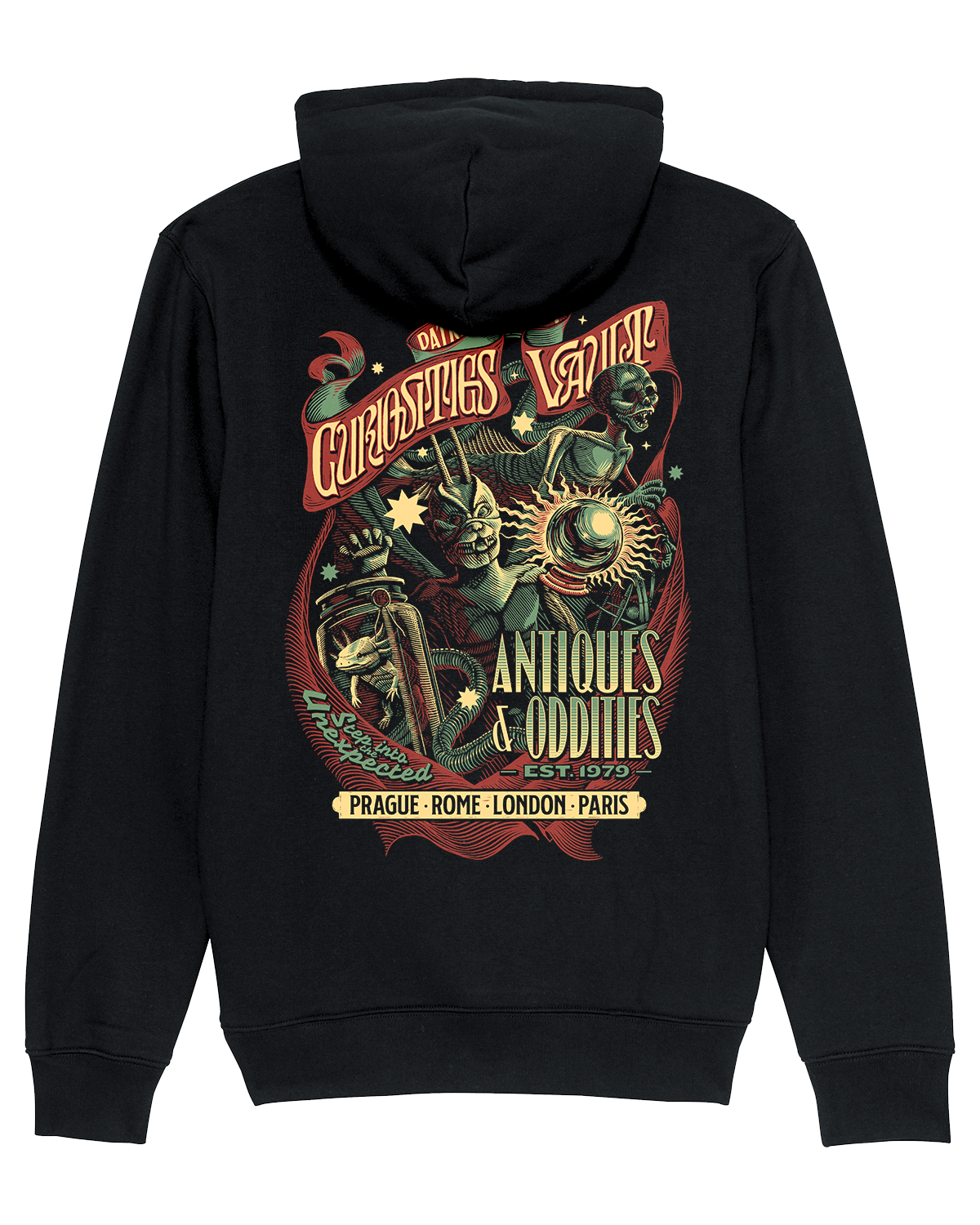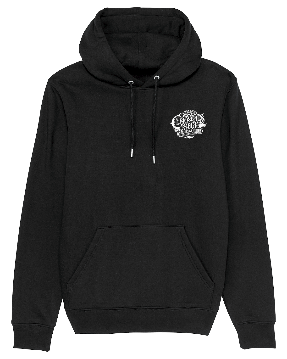Le visuel, réalisé par le studio Vaderetro, est ici sérigraphié sur le coeur et dans le dos d'un sweat à capuche noir unisexe en coton 100% biologique !