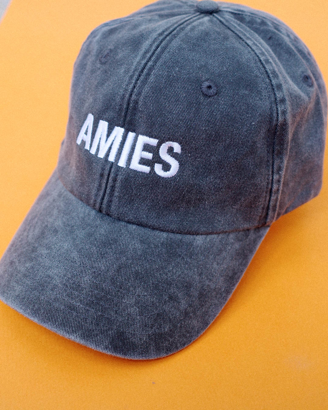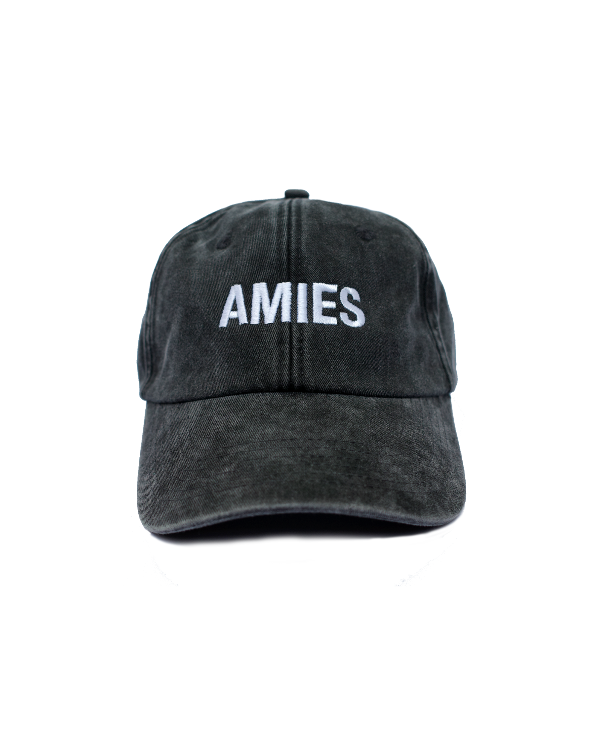 Le logo du podcast AMIES est ici brodé sur une casquette noire délavée en 100% coton drill lourd brossé. Son système de sangle permet de s'adapter à toutes tailles !